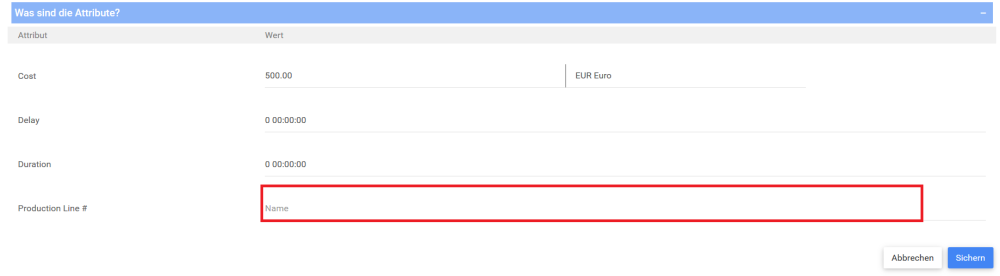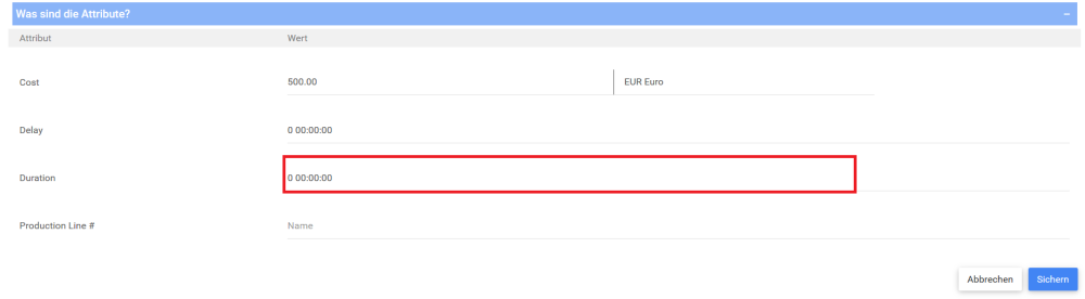 1. Navigieren Sie zu einem Objektattribut mit dem Typ Dauer. Navigieren Sie in diesem Beispiel zum Feld “Dauer”.