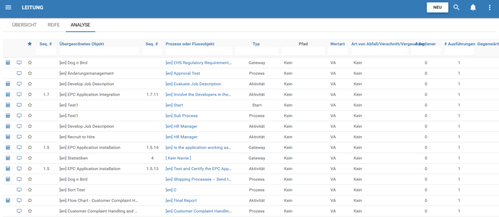 Alle Prozesse, Teilprozesse und deren Ablaufobjekte