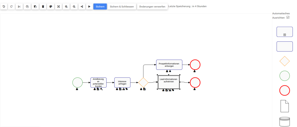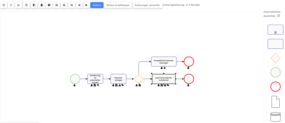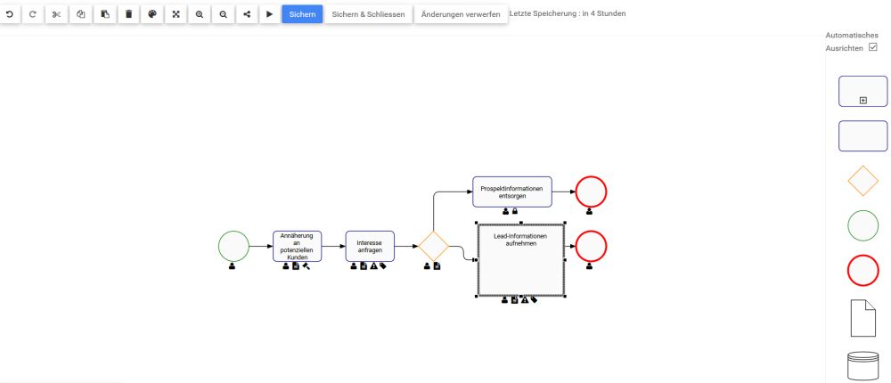 Web Modeler können die Größe von Formen beim Abbilden eines Prozesses ändern.