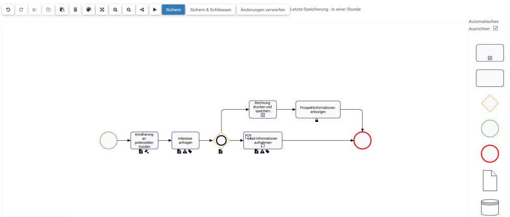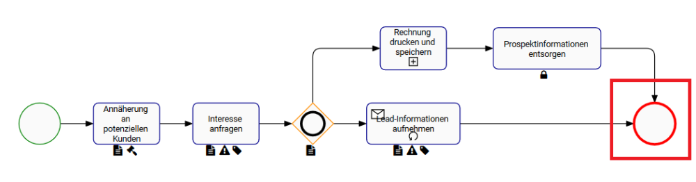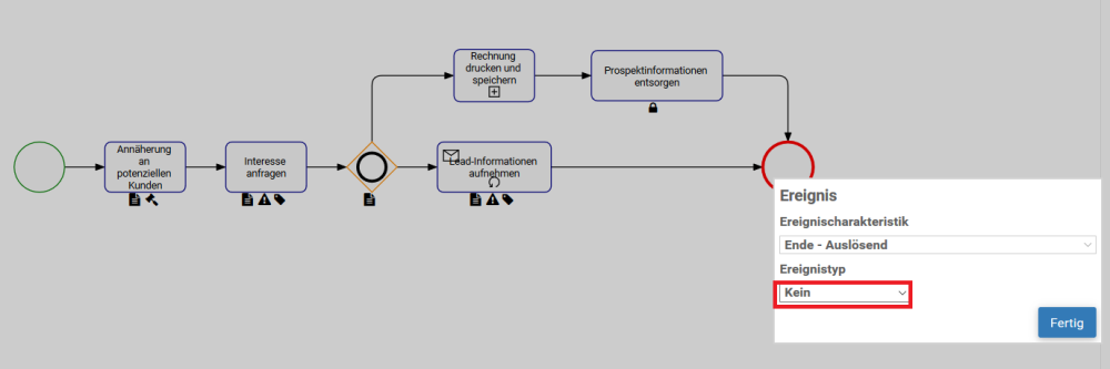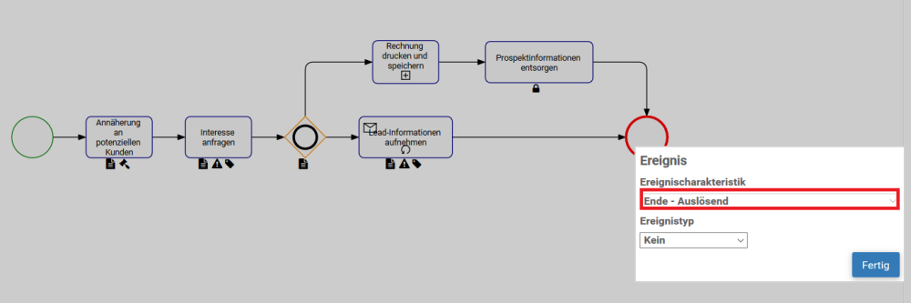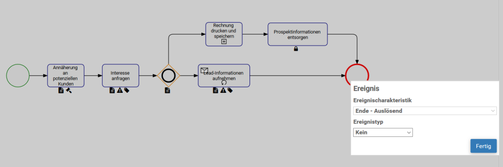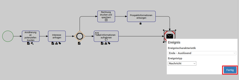- Nachdem Sie die BPMN-Eigenschaften für das Event zugewiesen haben, klicken Sie auf das Symbol