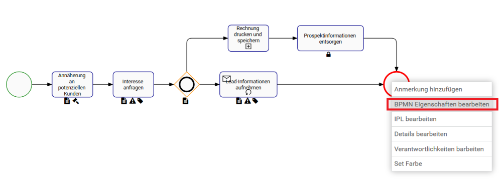- Wählen Sie das Feld “BPMN-Eigenschaften bearbeiten”.