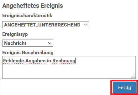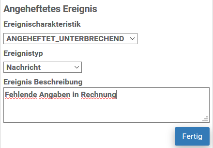 i) Geben Sie die Ereignisbeschreibung ein