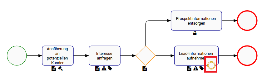 - Das Grenzereignis wird in der Prozessabbildung angezeigt.