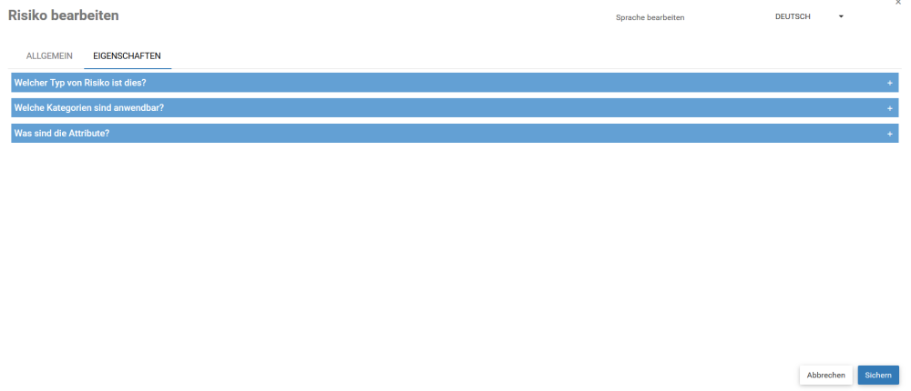 Die Registerkarte Eigenschaften enthält Abschnitte für den Typ, die zutreffenden Kategorien und die Attribute.