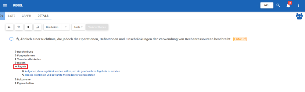 Der Abschnitt Regel zeigt alle zusätzlichen untergeordneten Regeln an, die einer übergeordneten Regel zugeordnet sind.