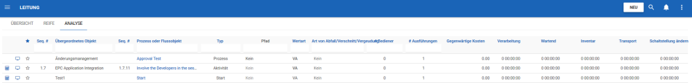 Diese Registerkarte ermöglicht es Prozessverantwortlichen oder Benutzern, die für bestimmte Objekte innerhalb von EPC verantwortlich sind, Echtzeitdaten zu den Objekten hinzuzufügen und erleichtert die Prozessanalyse insgesamt.
