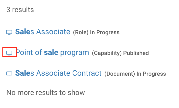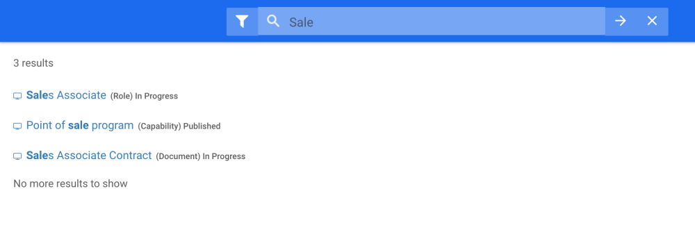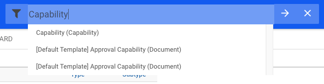 Searching for a Capability with the search bar allows the user to quickly navigate to the desired Capability. The user is able to search by name & description.