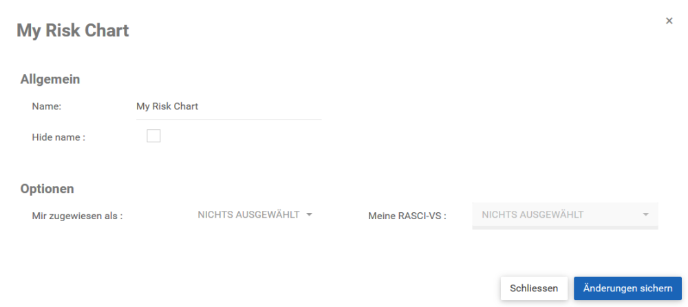7. Mit der Option “Mir zugeordnet als” können Sie auswählen, welche Rolle(n) und Ressource(n) Sie in der Risikodarstellung berücksichtigen möchten.