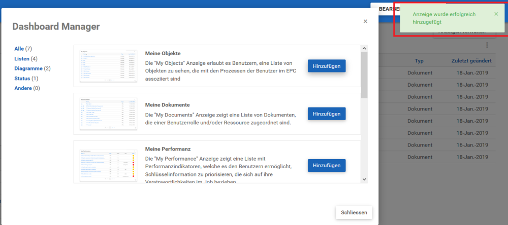 3. Das Fenster Dashboard Manager wird geöffnet.