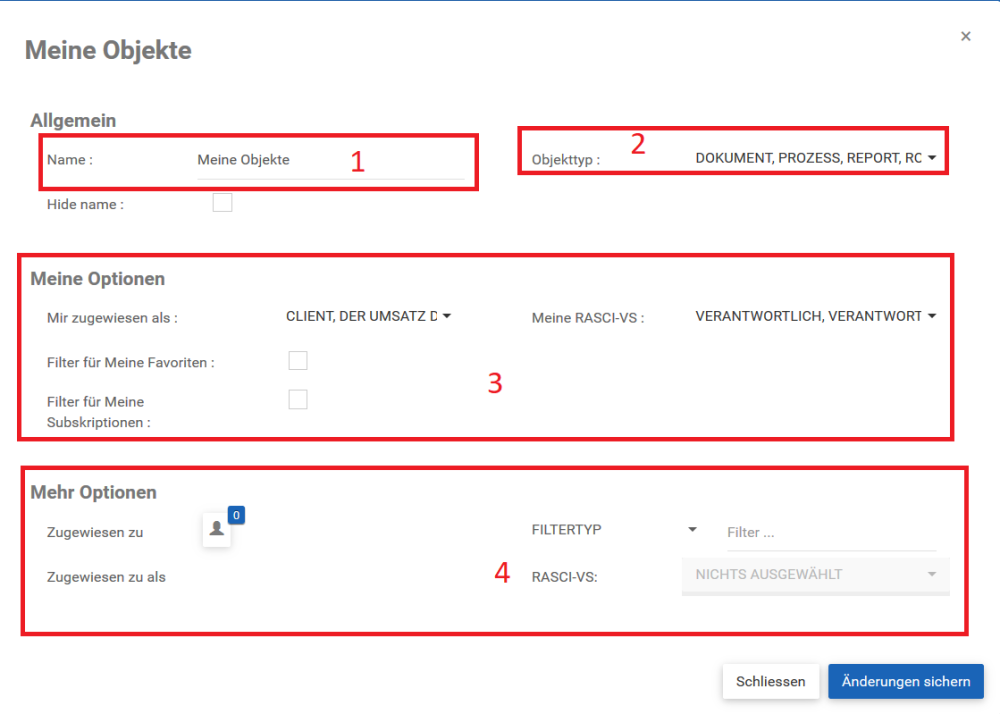 | Meine Optionen | Meine Optionen | Persönliche Objektzuordnungen Filter. Ermöglicht es Benutzern, durch Objekte zu filtern, die auch persönlich verwandt sind, direkt oder indirekt. |
