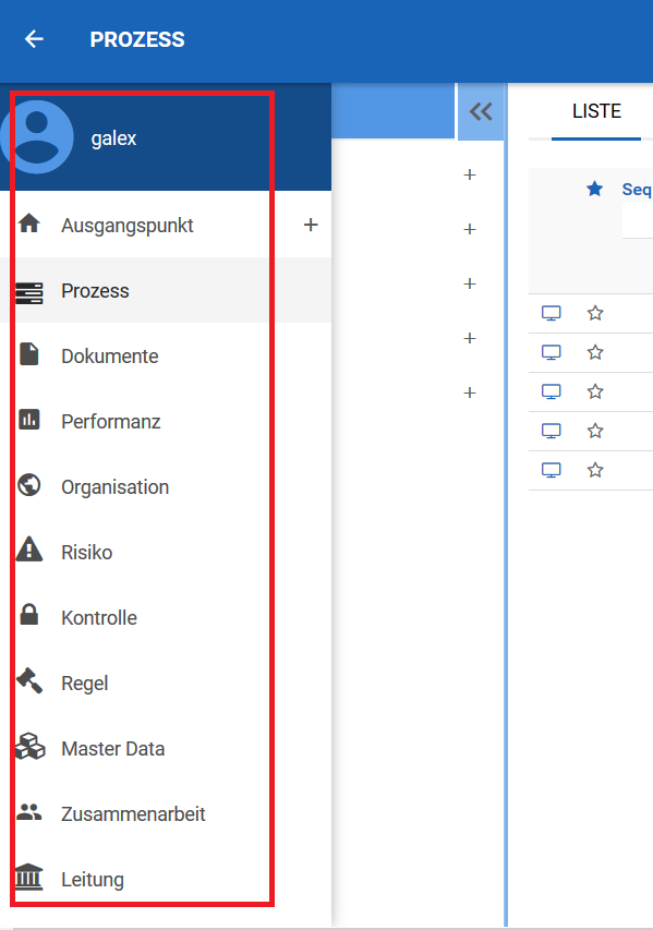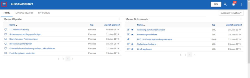 Das Navigationsmenü ermöglicht eine schnelle Navigation zwischen den EPC-Modulen.