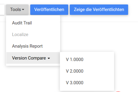 2. Wenn Sie mit der Maus über “Versionsvergleich” fahren, wird das Menü erweitert und zeigt alle zuvor veröffentlichten Versionen an.