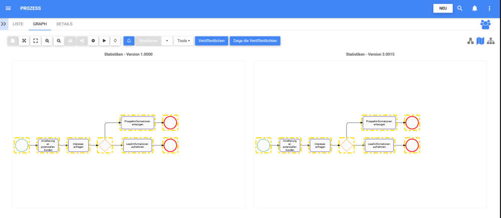Um den aktuellen Stand des Prozesses mit früheren Versionen zu vergleichen: