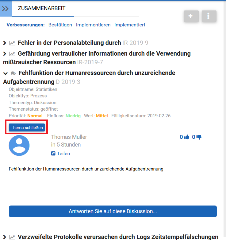 Sobald eine Zusammenarbeit ihr gewünschtes Ziel erreicht hat, kann sie von ausgewählten Benutzern geschlossen werden.