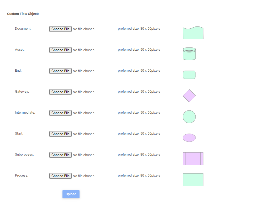 System Admin can upload custom flowchart images for their specific system. The GRAPH tab allows System Admins to create and upload SVG images of flowcharts and provides a new level of customization to modeler in order to create BPMN 2.0 process flows.