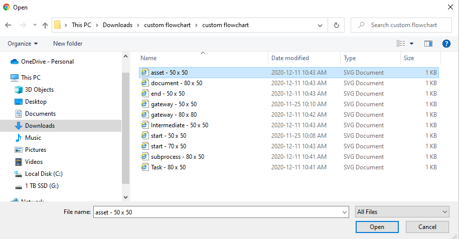 Uploaded files must be in SVG format and individually no larger than 1 MB.