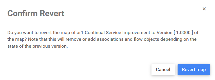 3. A new version of the object will be created based on the older version. For example, the current version of an object is 7.000. You are on version 2.000 and revert the object. The result will be a version 7.001 of the object based on the information contained in version 2.000.