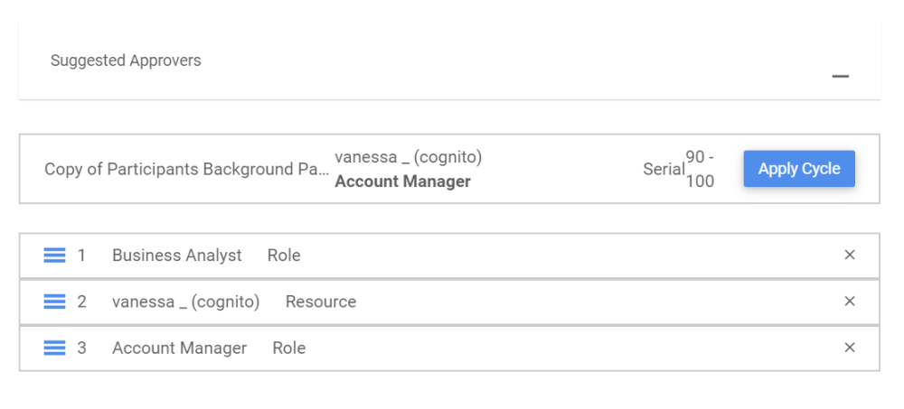 - Select “Apply Cycle” to the desired suggestion and the approvers will appear in a table