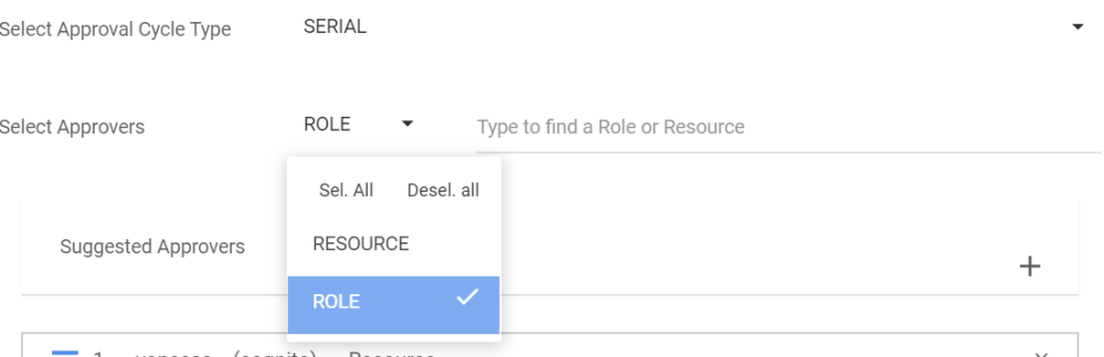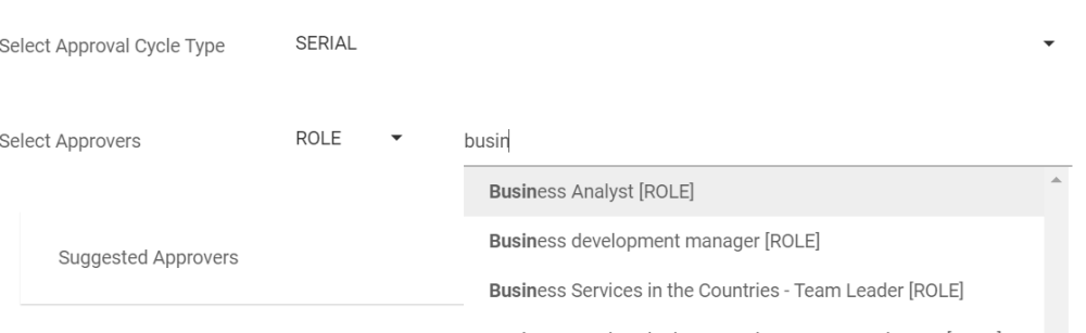 - Type the name of the Role you want to assign as the approver. From the search suggestions, click to select the Role you want to assign