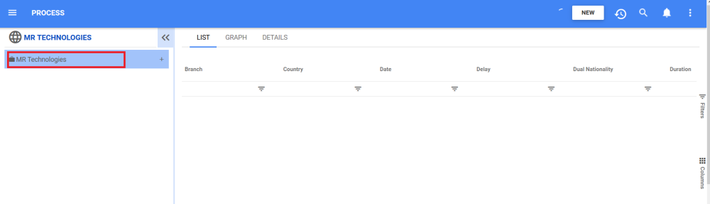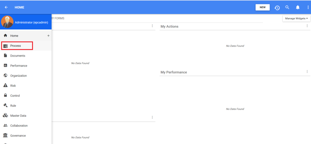 1. Click on the Navigation Menu Button on the top left of your screen and navigate to the Process Module