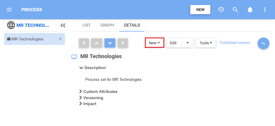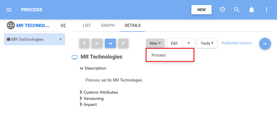 To create a new Process via the details tab of a set of sub-process, please follow the instructions below:
