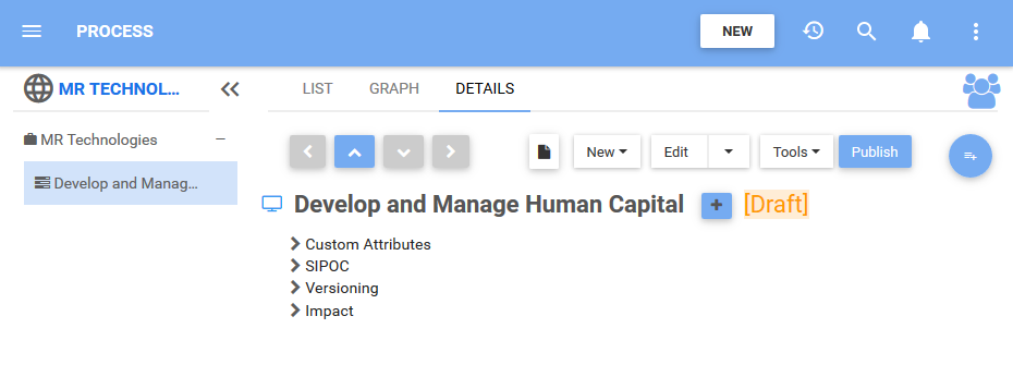 11. The new Process “Develop and Manage Human Capital” is now on the Process tree structure. This process is currently a draft. To learn how to publish Process objects, click here