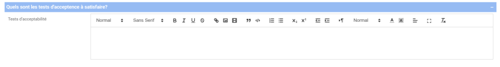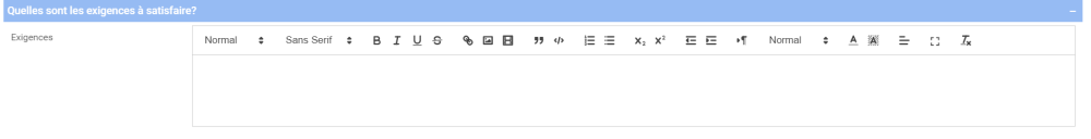 3. Tapez les exigences souhaitées dans la zone de texte enrichi.