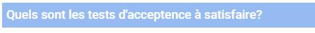 Le test d’acceptation utilisateur d’objet sert de liste de contrôle des tests qui doivent être passés pour garantir le bon fonctionnement des exigences métier.