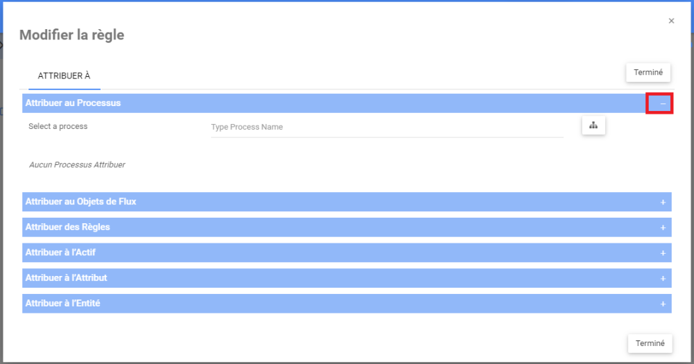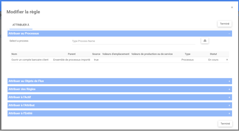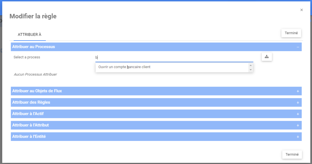 5. Pour attribuer un objet (p. ex., un processus), développez la section et recherchez l’objet en tapant ou en utilisant le sélecteur d’arborescence.