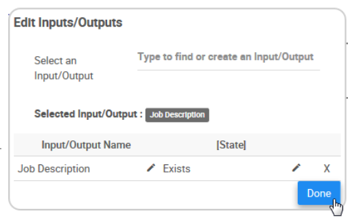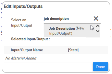 3. A window will be generated where you will type the name of the Input/Output: “Job Description,” and select it.