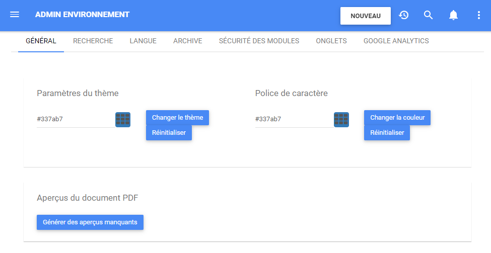 L’administrateur d’environnement dispose d’une section dédiée dans laquelle il peut gérer la possibilité de créer manuellement un aperçu pdf pour chacun des documents pris en charge dans le système.