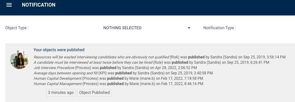 New resources (employees) added to roles associated with already published objects will still receive confirmation notifications (by email and in EPC), ensuring that they acknowledge and confirm the objects their role is assigned to with RASCI, without the need to republish. This allows new resources to onboard quickly into their roles and organizations can easily track and report that everyone is aware of critical corporate policies & their respective work procedures to reinforce compliance.