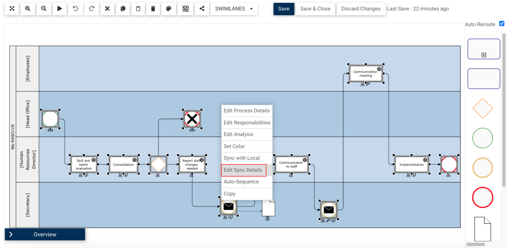 2. In the Graph Edit, select as many flow objects as wanted, right-click and select “Edit Sync Details”.