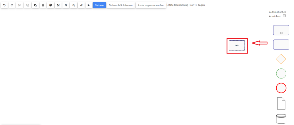- Wählen Sie die Form, die Sie hinzufügen möchten. Schnappen Sie es sich (Linksklick mit der Maus) und ziehen Sie es (Linksklick halten) auf die Karte. Fügen Sie für dieses Beispiel eine Aufgabe hinzu.
