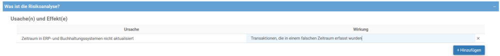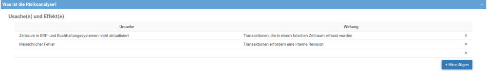 5) Um weitere Ursachen und Auswirkungen hinzuzufügen, wählen Sie die Schaltfläche Hinzufügen