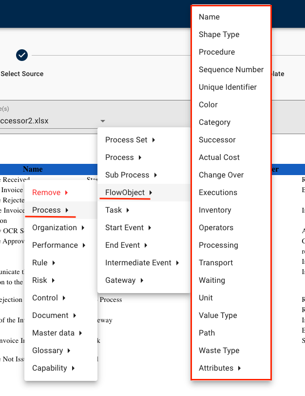 | From Actual Cost to Waste Type | Flow object’s Analysis attributes |