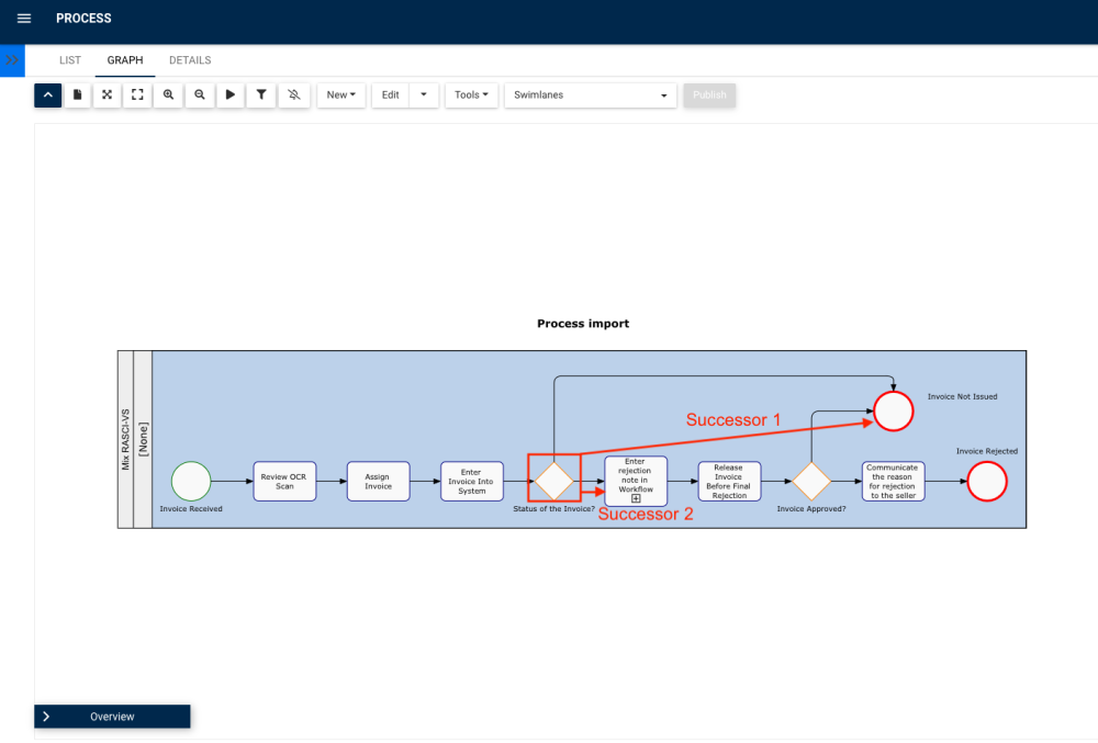 As for gateways, you can define more than one successor flow object, which will create subsequent pathways in your graph, just as you would when using the EPC Process Modeler.
