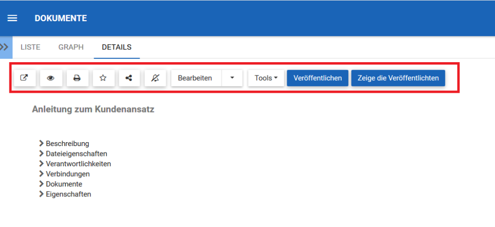 Benutzer können zwischen den Elementen über die Symbolleiste oben auf der Seite navigieren. Weitere Details finden Sie in der untenstehenden Symbolleiste.