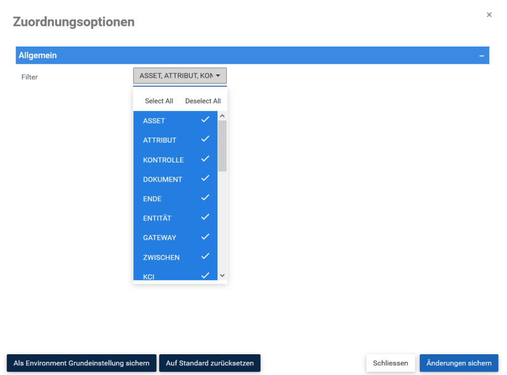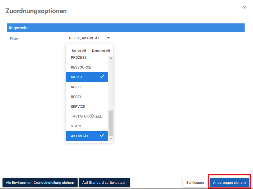 4. Wählen Sie den gewünschten Filter aus und wählen Sie “Änderungen speichern”. Für dieses Beispiel werden wir Risiko und Aufgabe auswählen.