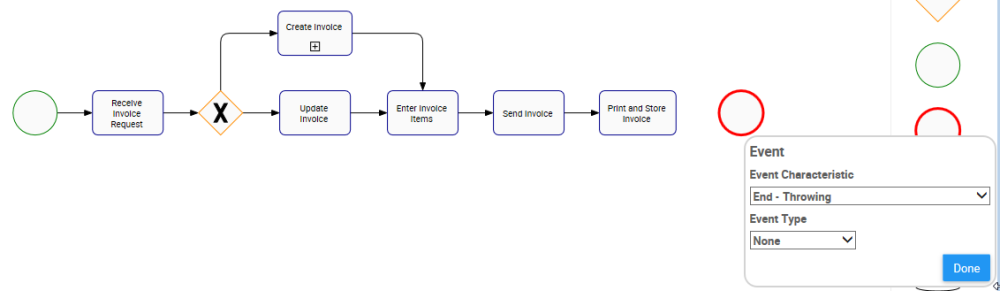 1. After assigning the BPMN properties for the Event, click on the icon to close the pop-up