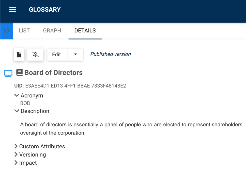 The Description section is where you will find details about the Terms folders, Term Sets, or Terms you are observing. This rich text area allows for the display of all additional details that has been uploaded regarding the item in particular. These details provide users with all critical information about items that has been uploaded by EPC Modelers.