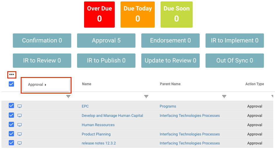 4. Click on the three dot button, on top of the select all button. An Approval box will appear.