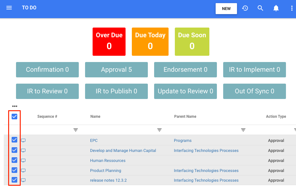 The Mass Approval feature allows users with approval profiles to be able to bulk approve to do’s that are appearing in their list, to save time on pending tasks.
