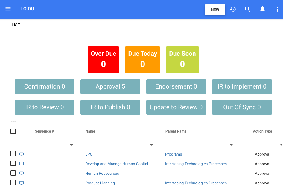 2. At the bottom of the to do page, the user will see the list of all the items that are pending. To filter for approvals, click on the