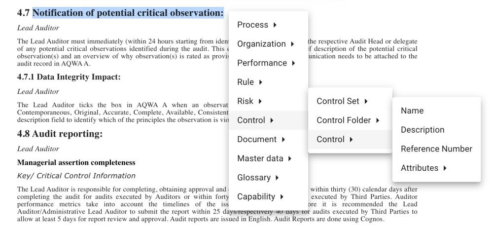 - From the context menu, select the specific type and property or attribute to assign the correct tag against the object being tagged