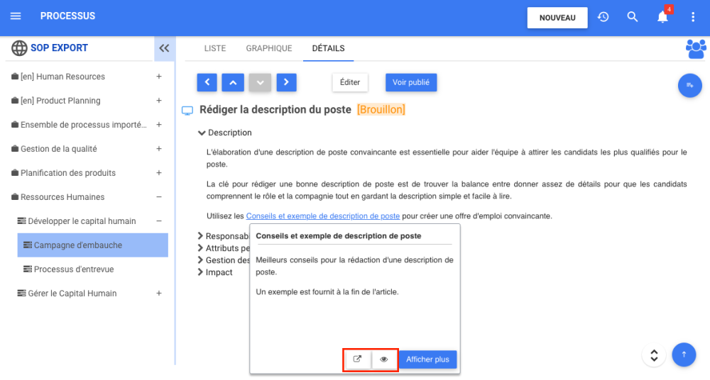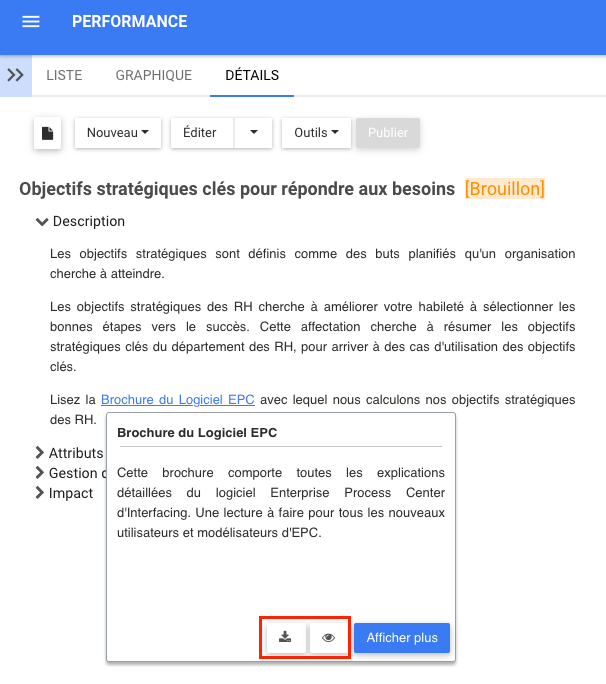 Lors de la liaison d’un document EPC, la possibilité de visualiser ou de télécharger le document ou d’aller à l’URL directement depuis la fenêtre pop-up est disponible, pour un accès plus rapide aux documents liés à un terme.