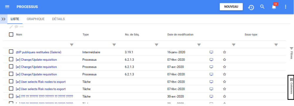 3. Allez à n’importe quel module. Dans cet exemple, nous utiliserons le module Processus et vous accéderez à la vue Liste.