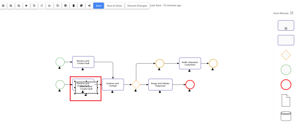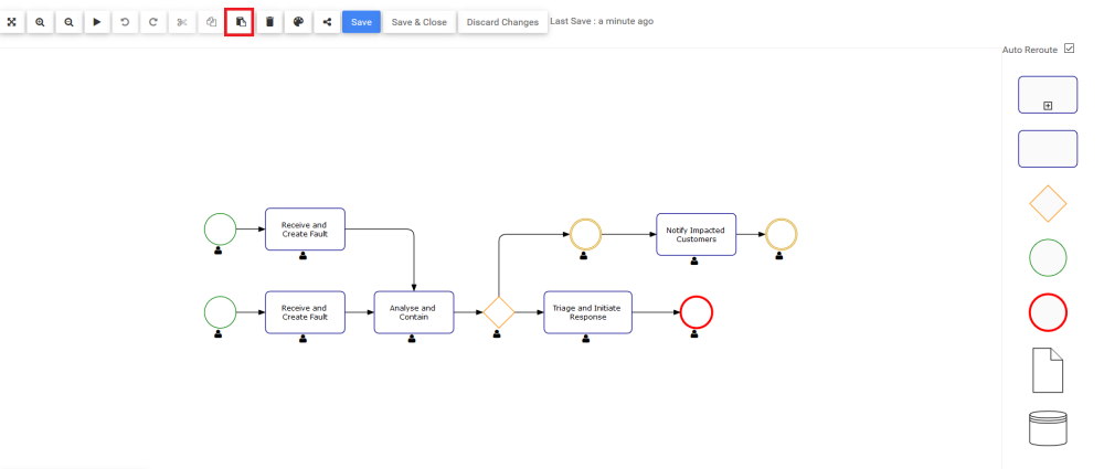 La fonction Coller permet aux modélisateurs Web de coller des formes qu’ils ont précédemment copiées ou coupées dans la carte de processus. Le bouton Coller