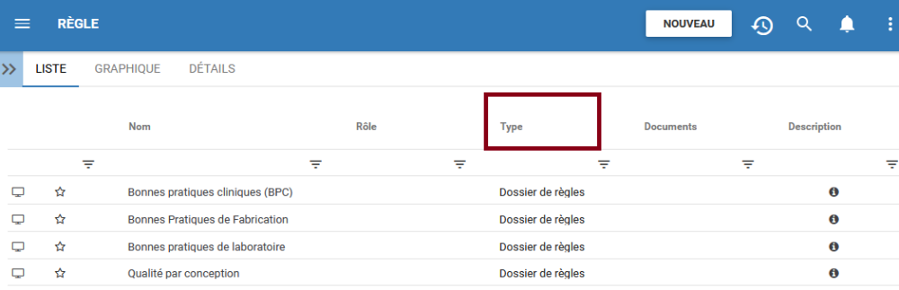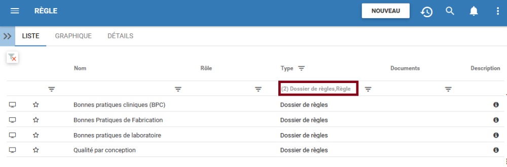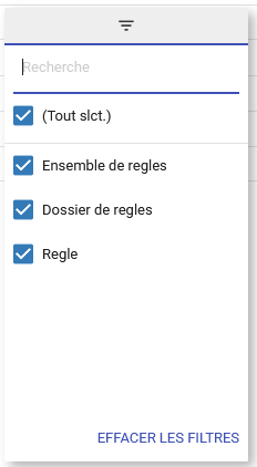 3. Sélectionnez le filtre souhaité. Dans cet exemple, nous sélectionnerons Règle et Dossier de règles.