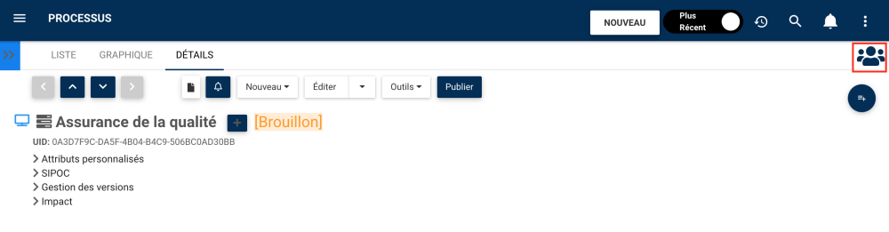 2. Les responsables de la mise en œuvre de la requête recevront une notification d’objet à réviser lorsque chacune des versions brouillon (en cours) sera créée afin qu’ils soient avertis si des modifications sont apportées par quelqu’un d’autre, par exemple de la synchronisation depuis des sources externes (Parser, import de masse, etc) ou lorsqu’un nouveau processus est lié à celui de l’exécuteur, ce qui pourrait impacter son processus (en amont, en aval).